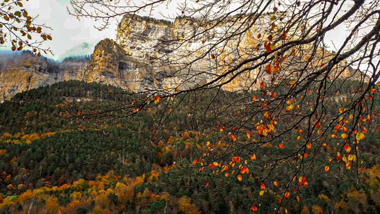 Nuestra ruta transcurre fuera del circuito tradicional, y contemplaremos el valle desde las alturas... comenzaremos dentro de un inmenso hayedo (espectacular en esta época del año, donde veremos la gran explosión de colores), y cogeremos el camino que nos lleva hacia el Circo de Carriata. Sin darnos cuenta, el bosque empieza a desaparecer, y de repente veremos el Pico llamado Tozal del Mallo, y un poco más tarde, ya en los 1.800 m de altitud, recorreremos la Faja Racu?n, viendo encima de nosotros el Espolo?n del Gallinero y el Circo de Cotatuero.